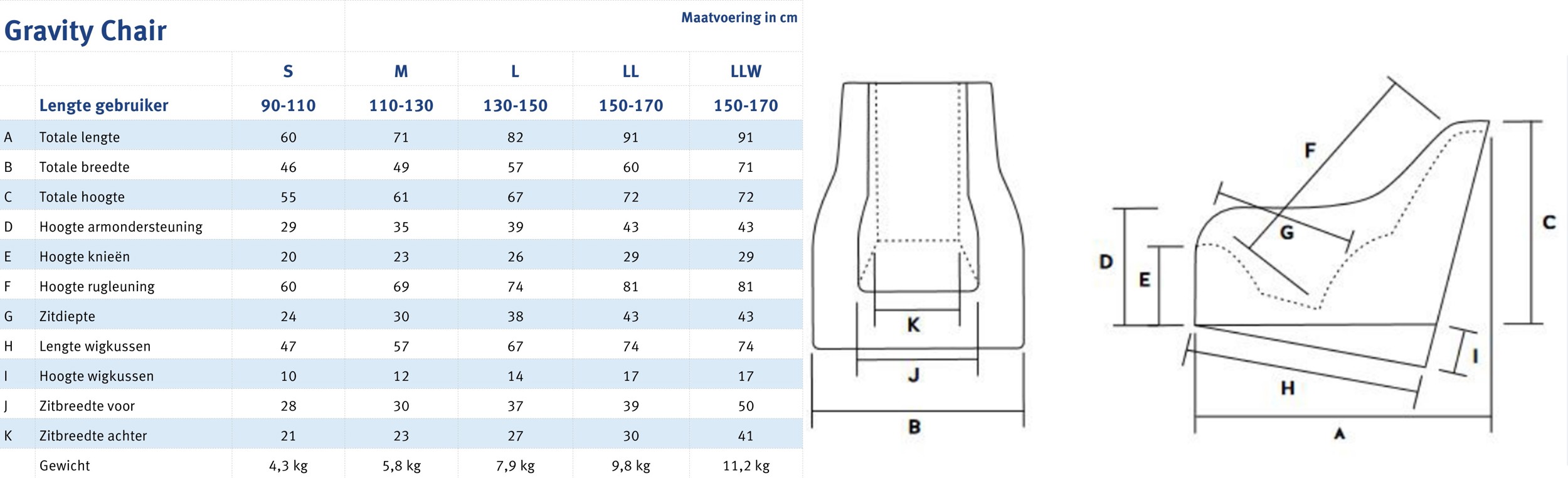 Na ruim 20 jaar ervaring met de Gravity Chair kan de producent verschillende positieve resultaten geven. Het combineren van de zwaartekracht met de aansluitende zijdelingse ondersteuning is uitermate doeltreffend gebleken bij: