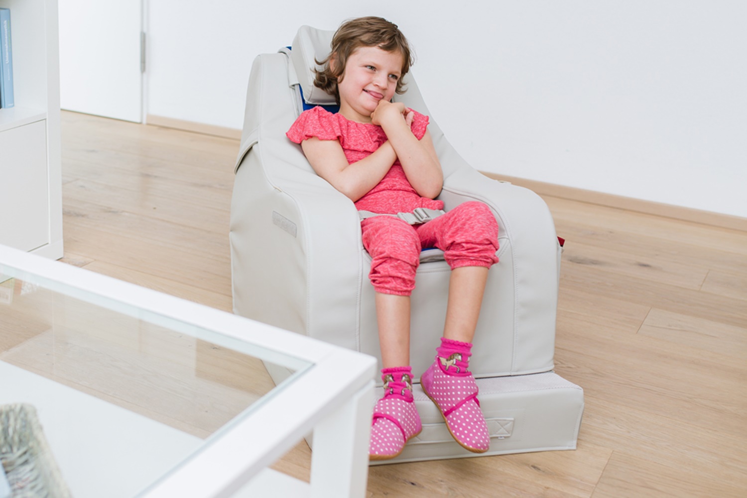 Personen met ADHD komen weer tot zichzelf door de zijdelingse ondersteuning. De stoel helpt om rustig te worden en ondersteunt bij het ‘vinden van zichzelf’.