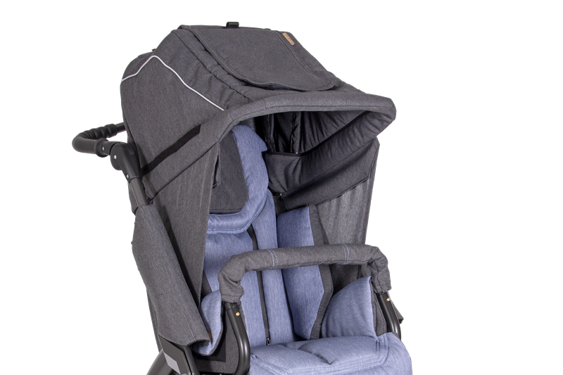 Enigszins meegroeibaar is de Jacko Clipper wandelwagen. Door het monteren van de verkleiningsset in een Clipper kunnen ook kleine kinderen plaats nemen in deze wandelwagen.