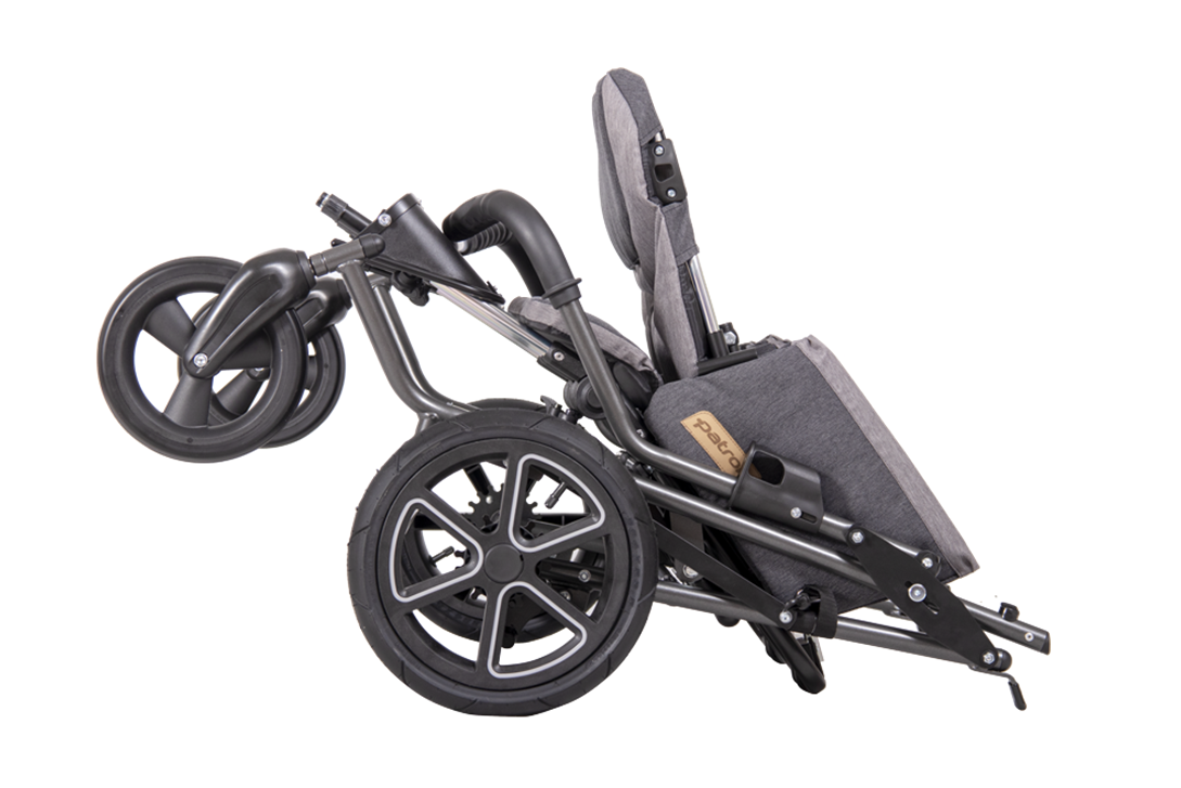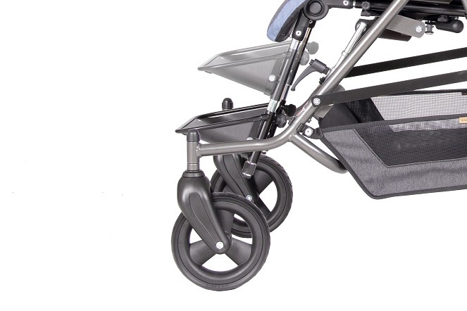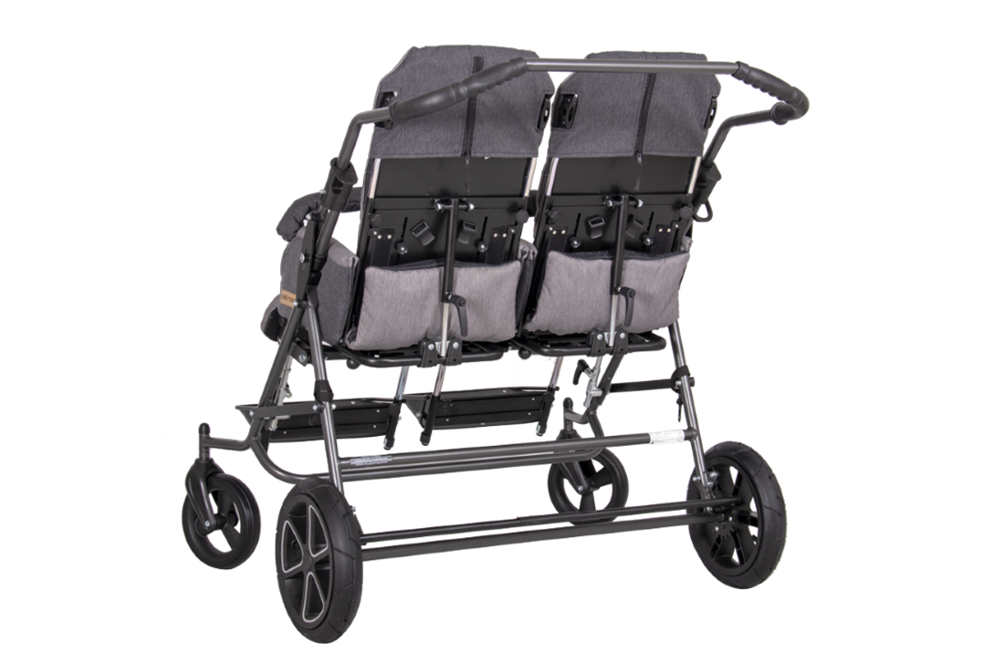 De zitunits van de Tom 4 Duo zijn uitgevoerd met een in hoogte instelbare rugleuning en bekledingssets van zeer comfortabele stof. Deze aangepaste buggy kan daarnaast in een ligstand tot maar liefst 175° zodat uw kind, indien nodig, kan rusten. De zitunits kunnen ieder afzonderlijk in de rijrichting, maar ook in ‘face-to-face’ positie geplaatst worden. Het onderstel kan ingeklapt worden en de zitunits plus het onderstel kunnen in de kofferbak van een auto meegenomen worden.